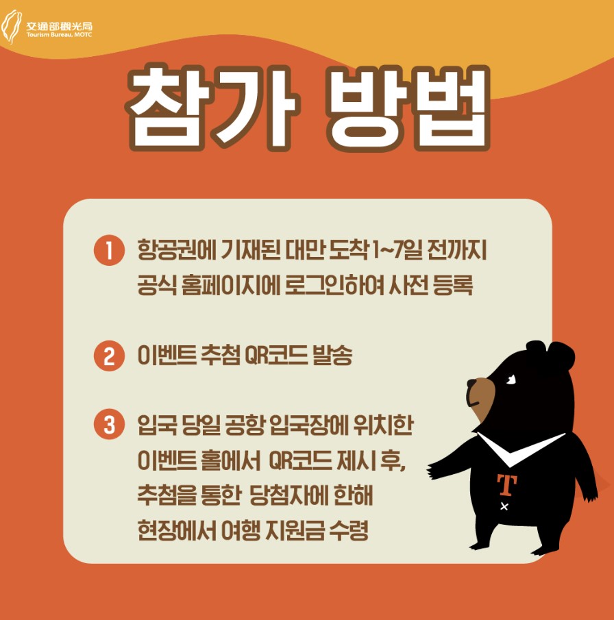 - 대만 도착하기 7일 전부터 전날까지 등록할 수 있으며 대만 공항 입국을 한 후 홀에서 추첨이 가능합니다.
