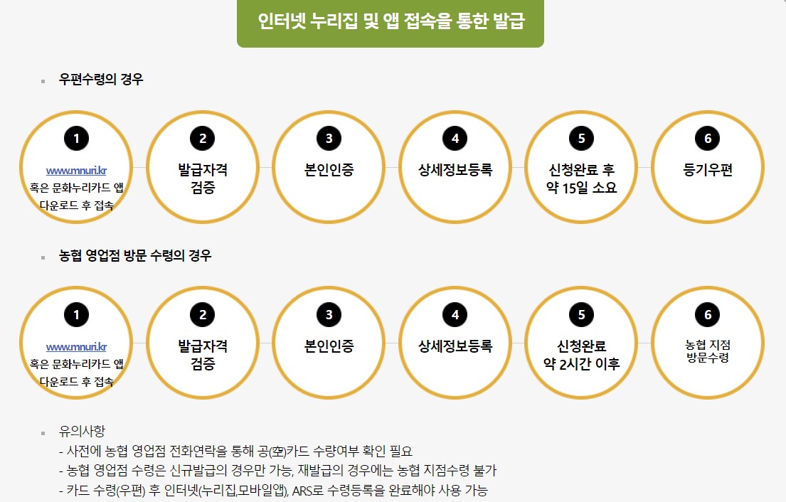 2024년 2월 1일부터 전국의 주민센터, 온라인(www.mnuri.kr), 모바일 앱, 전화(ARS)를 통해 재충전 및 신규 발급이 시작됩니다. 이전 연도에 문화 누리 카드를 발급받고 수급 자격을 유지하는 분들은 별도의 신청 없이 자동으로 2024년도 지원금이 재충전됩니다.