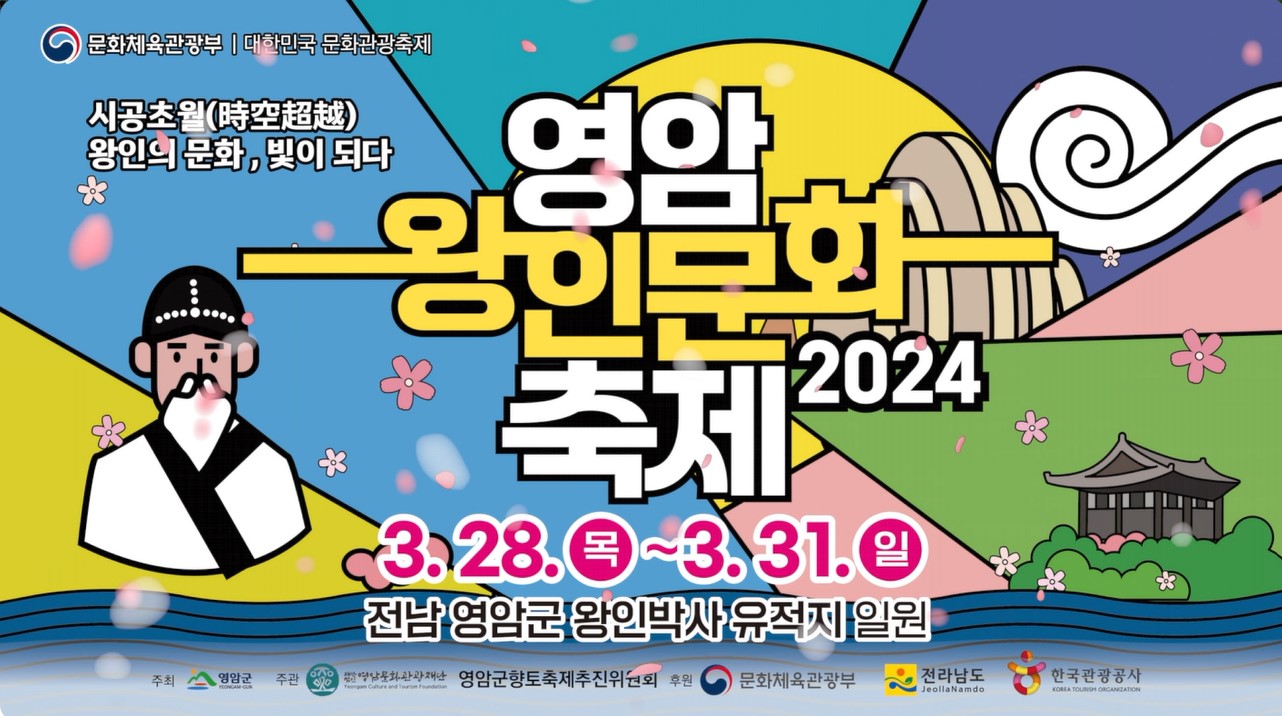 2024년 영암왕인문화축제가 오는 28일에 개막을 합니다. 이번 축제는 31일까지 벚꽃이 만개하는 왕인박사유적지와 그 일대 상대포, 구림마을에서 진행됩니다. 이번 축제는 여러 가지 프로그램과 체험등 다양하게 준비되어 있습니다.