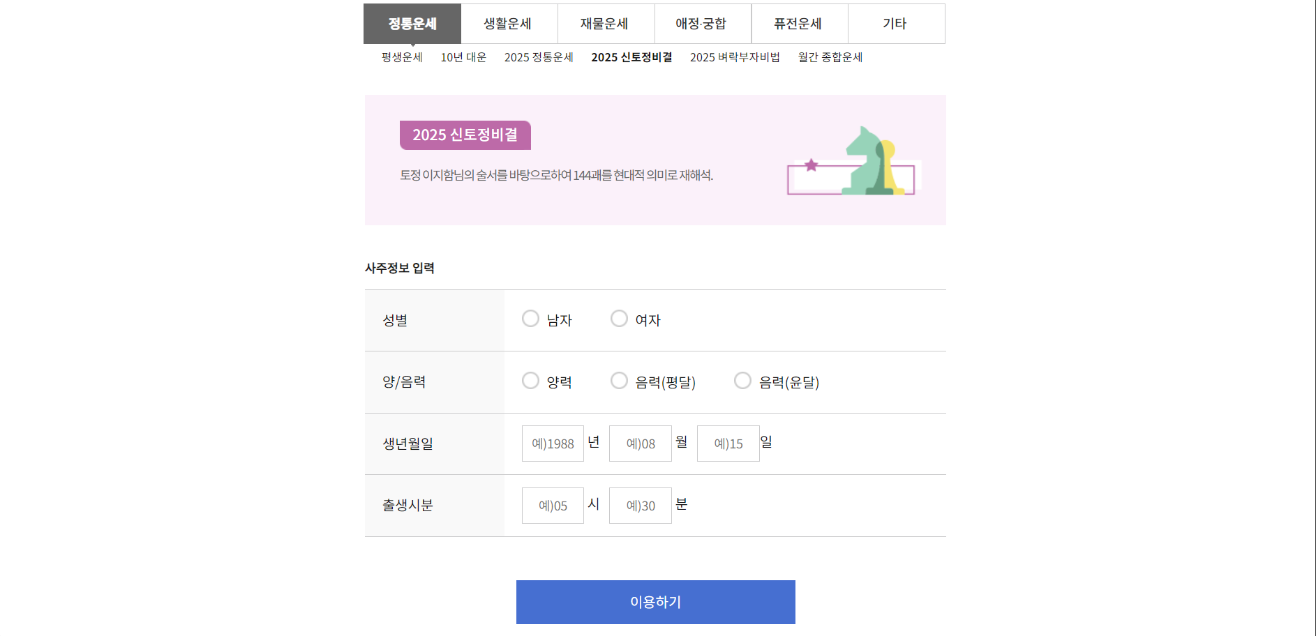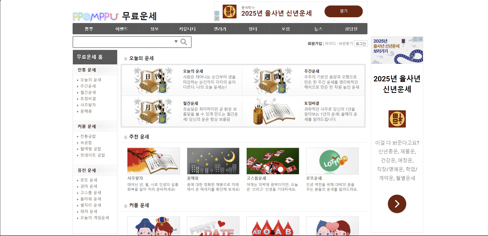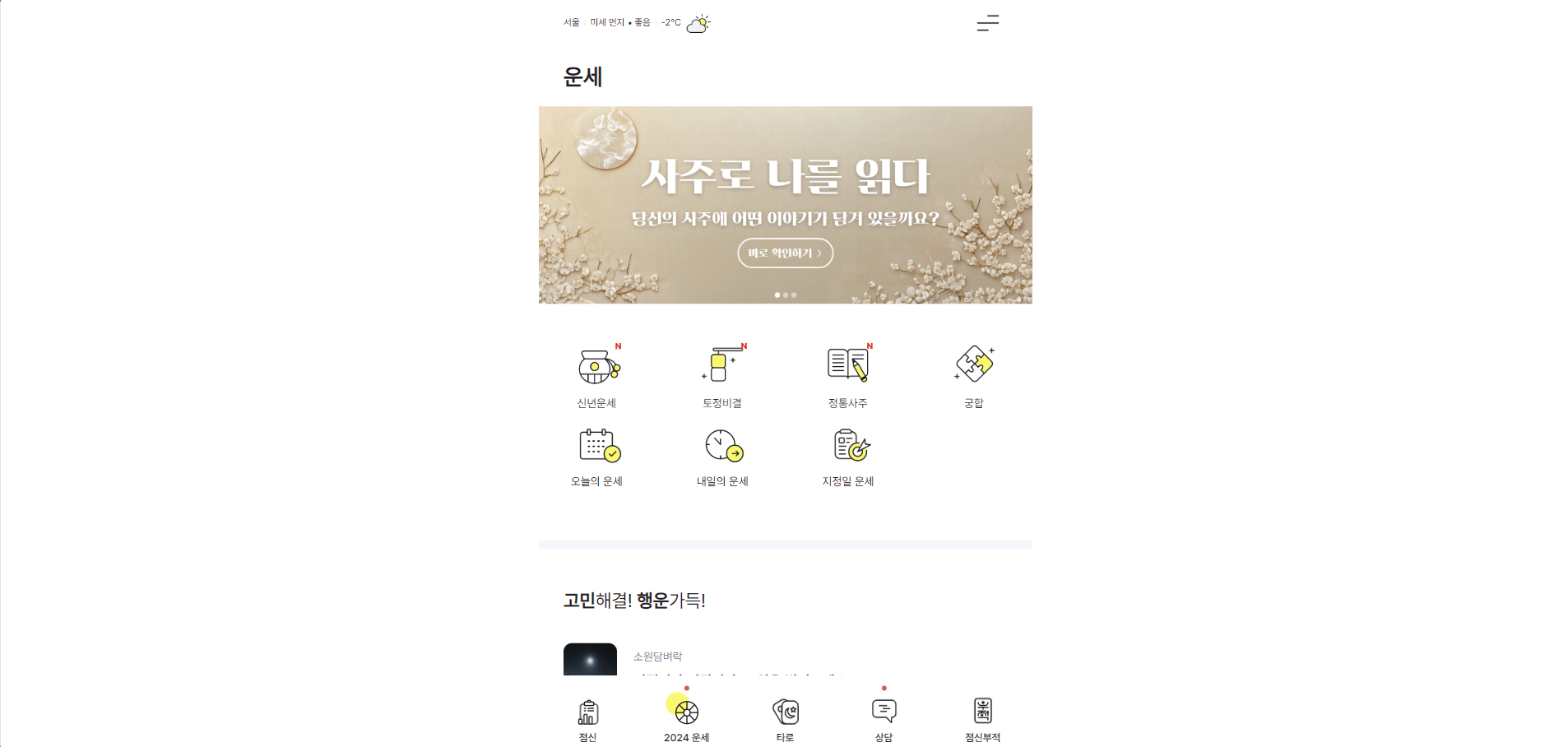 무료로 신년운세, 토정비결, 사주팔자 등을 확인할 수 있으며, 유료 상담 서비스도 함께 운영됩니다.