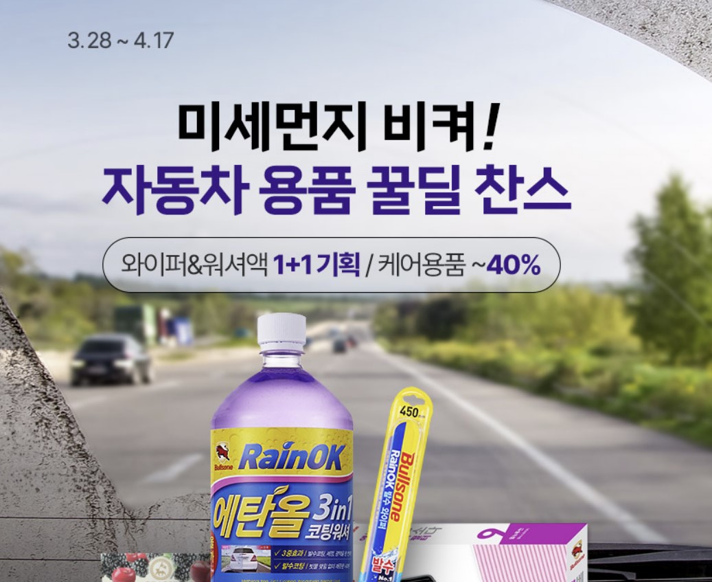 황사와 미세먼지를 한방에! 와이퍼, 워셔액, 방향제까지 득템 찬스입니다.